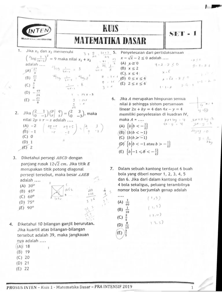 Soal Tes Inten : Matematika Dasar Penjumlahan Pengurangan Perkalian Pembagian Angka Pecahan Bilangan Desimal Youtube / Kumpulan soal intensif to , soal ujian nasional, soal uts, soal uas, dan soal prediksi un.